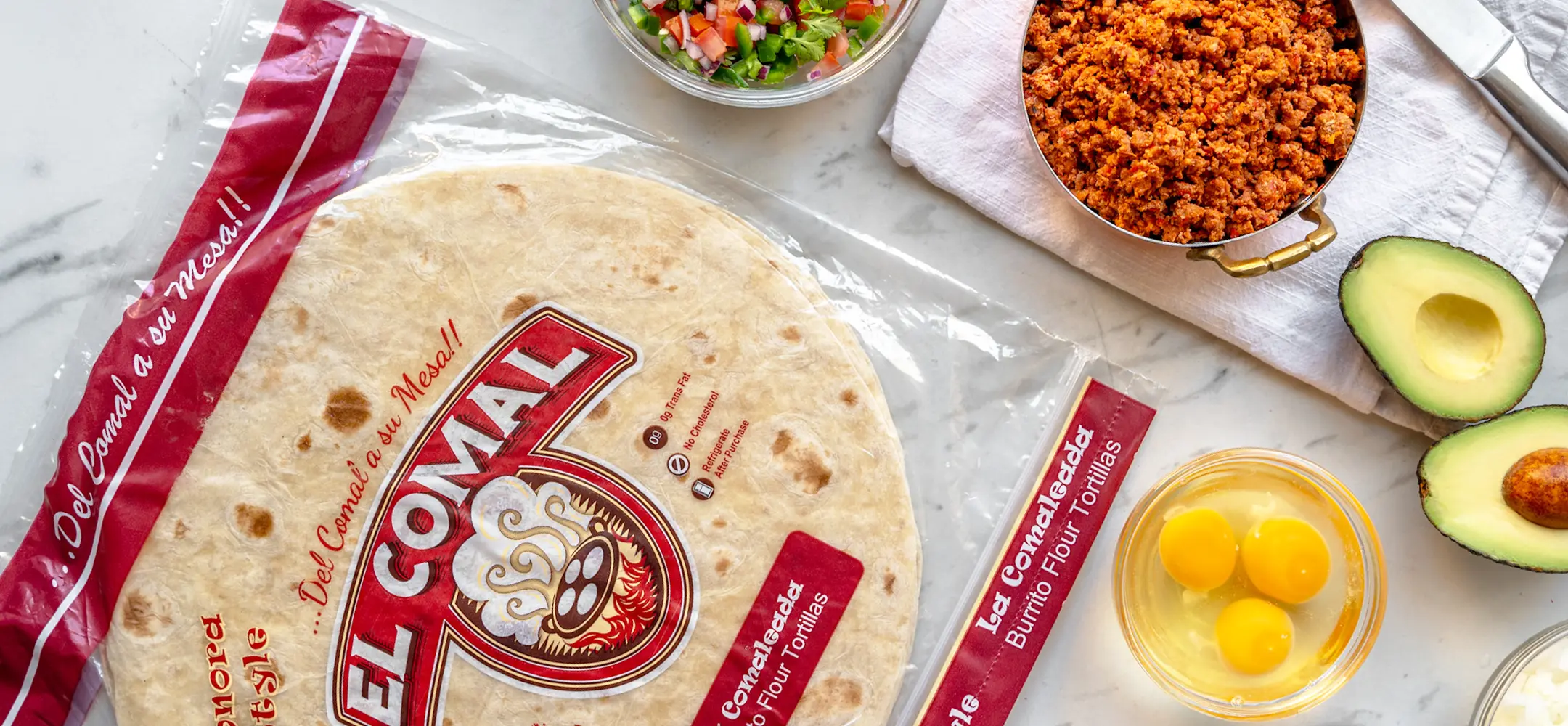 Spicy chorizo, fluffy eggs, and creamy avocado make this burrito a breakfast favorite. Wrapped in soft El Comal Sonora Style Burrito Tortillas, every bite is warm, hearty, and full of flavor.